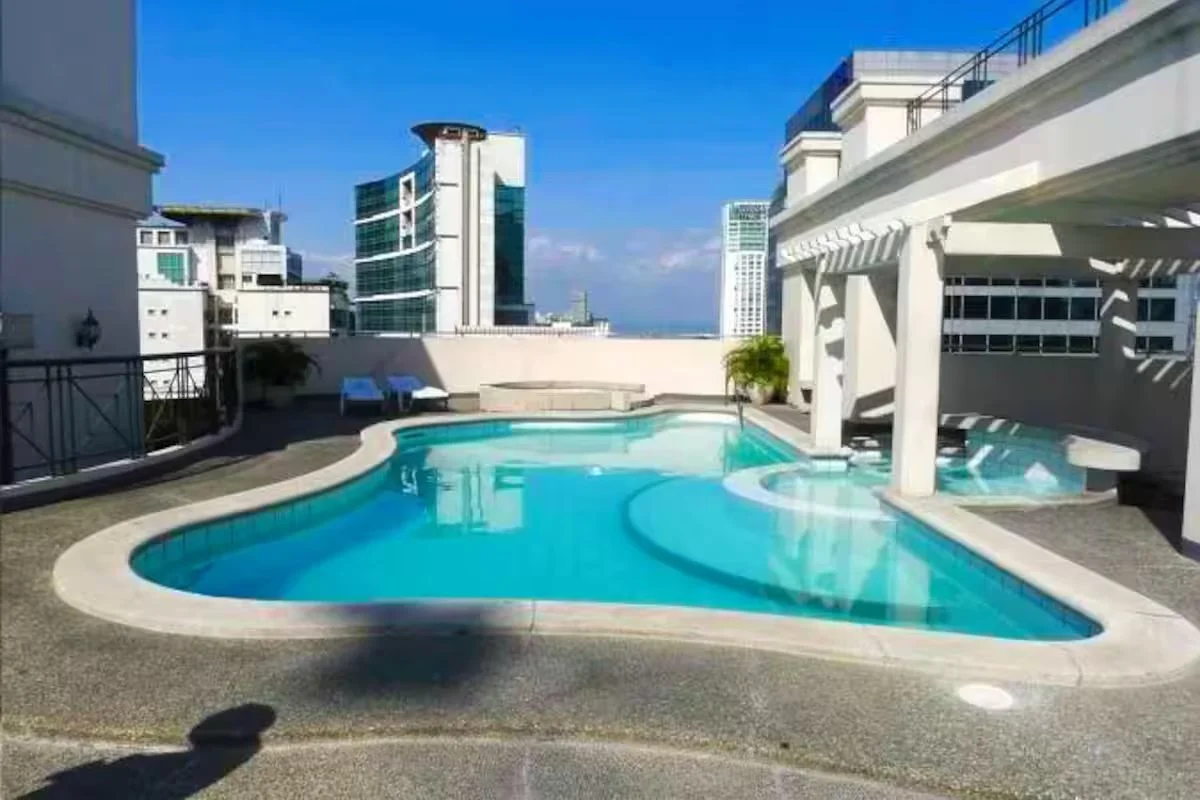 Spacious for family and friends, fully-airconditioned, finely furnished &FREE carpark. 24/7security w/ Hotel-like perks; pool, gym, sauna, 360° rooftop pool view & a helipad if needed. :)